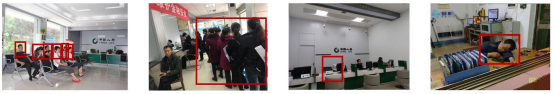 • 实现柜面人数统计、 重点名单人员识别,离岗、趴伏、吸烟、未戴口罩、人员排队、 人群聚集、清点钞票动作等检测识别