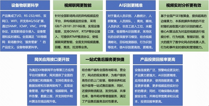 通过在人寿集团柜面服务、营业厅及职场部署AI智算盒,搭载保险职场及银行营业厅AI算法、物联网网关应用系统,成功实现设备物联、视频联网、智能识别、职场管理、风险管控等功能应用,助力柜面服务质量提升。